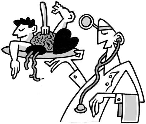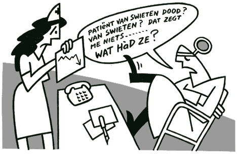 Illustratie in VUmc tijdschrift Synaps nr 17, 1997, bij column Rob Oudkerk
