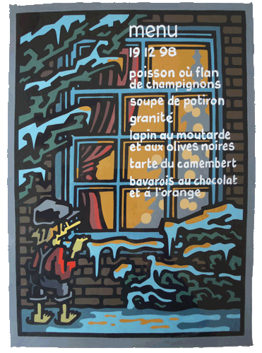 Uitnodigingen voor een borrel, menukaarten, een uithangbord, een opzet van een stripverhaal . . .